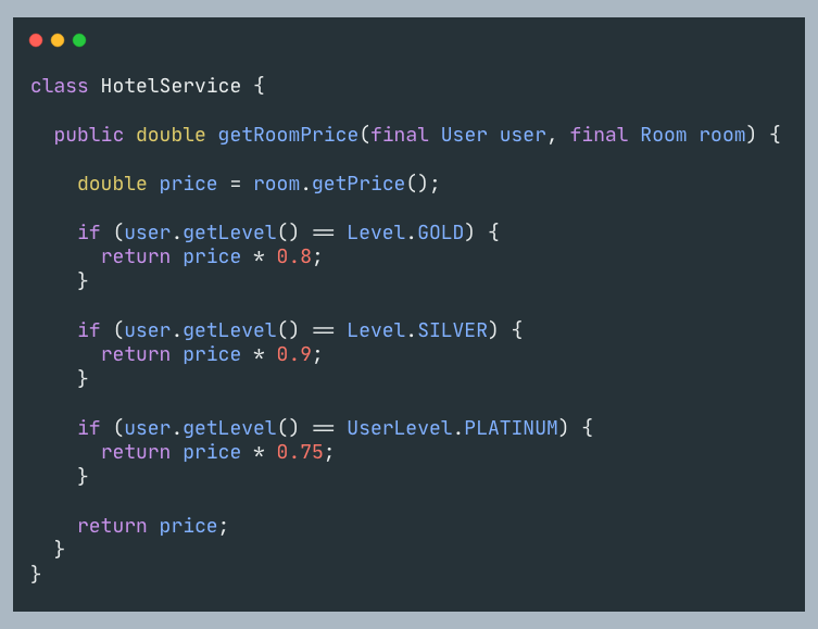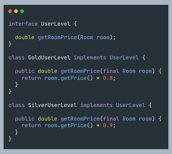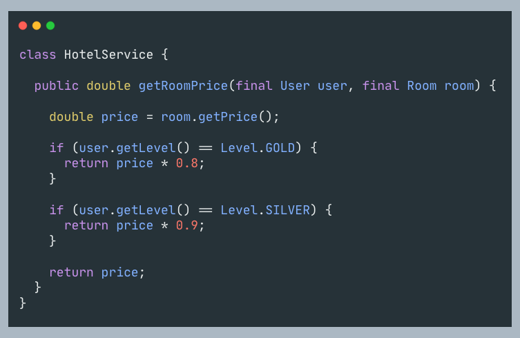 改造后,HotelService的getRoomPrice就稳定了,无需根据用户级别不断调整。 一旦有稳定的构造块,就能在后续将其当做一个稳定模块复用。