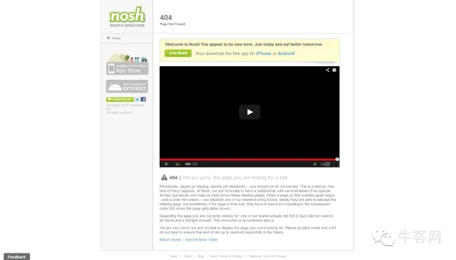 幽默与多媒体当用户进入404页面的时候,可以在页面上嵌入自动播放的音频或者视频,为用户介绍网站或者引导用户。在视频或者动画中注入适当的幽默和卖萌,可以缓解误入此处用户的抵触情绪。