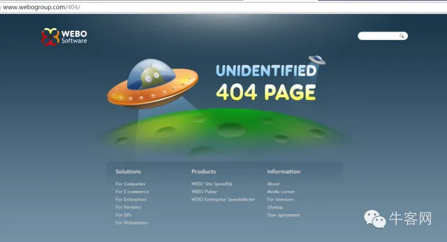 社交媒体在404页面上提供社交媒体链接是个好想法,一方面可以帮助误入歧途的用户解决问题,另一方面也可以通过社交媒体吸引更多用户。将网站的Facebook、Twitter、Google+、Tumblr、微博、微信链接附加在404页面上,可以让用户在无法解决问题的情况下通过社交媒体进行互动,寻求解决方案。通常,在官方无法即刻给出解决方案的是,其他的用户或者粉丝也可能会给予用户一定的帮助。