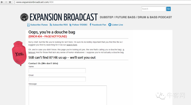 提供在线联系方式作为一种沟通用户的方式,在404页面提供一个内嵌表格让用户留言是一种颇具诚意的解决方案。用户可以通过表格留下联系方式,碰到的问题,或者试图寻找的信息和内容等。