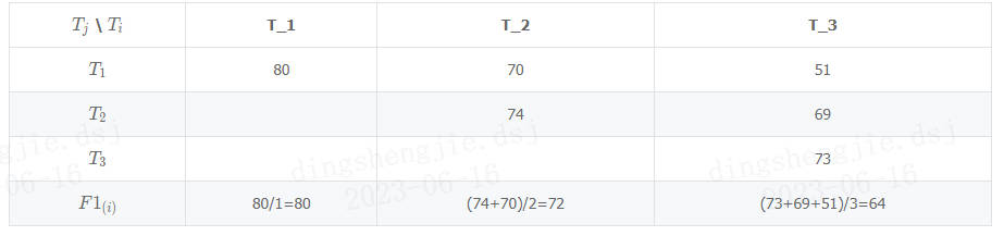 最终该任务顺序的 F1N=3F1(1)+F1(2)+F1(3)=380+72+64=72; 假设在另外两个顺序 “T3 - T1 - T2” 和 “T2 - T3 - T1” 上的结果为 68 和 70,则最终结果为 372+68+70=70