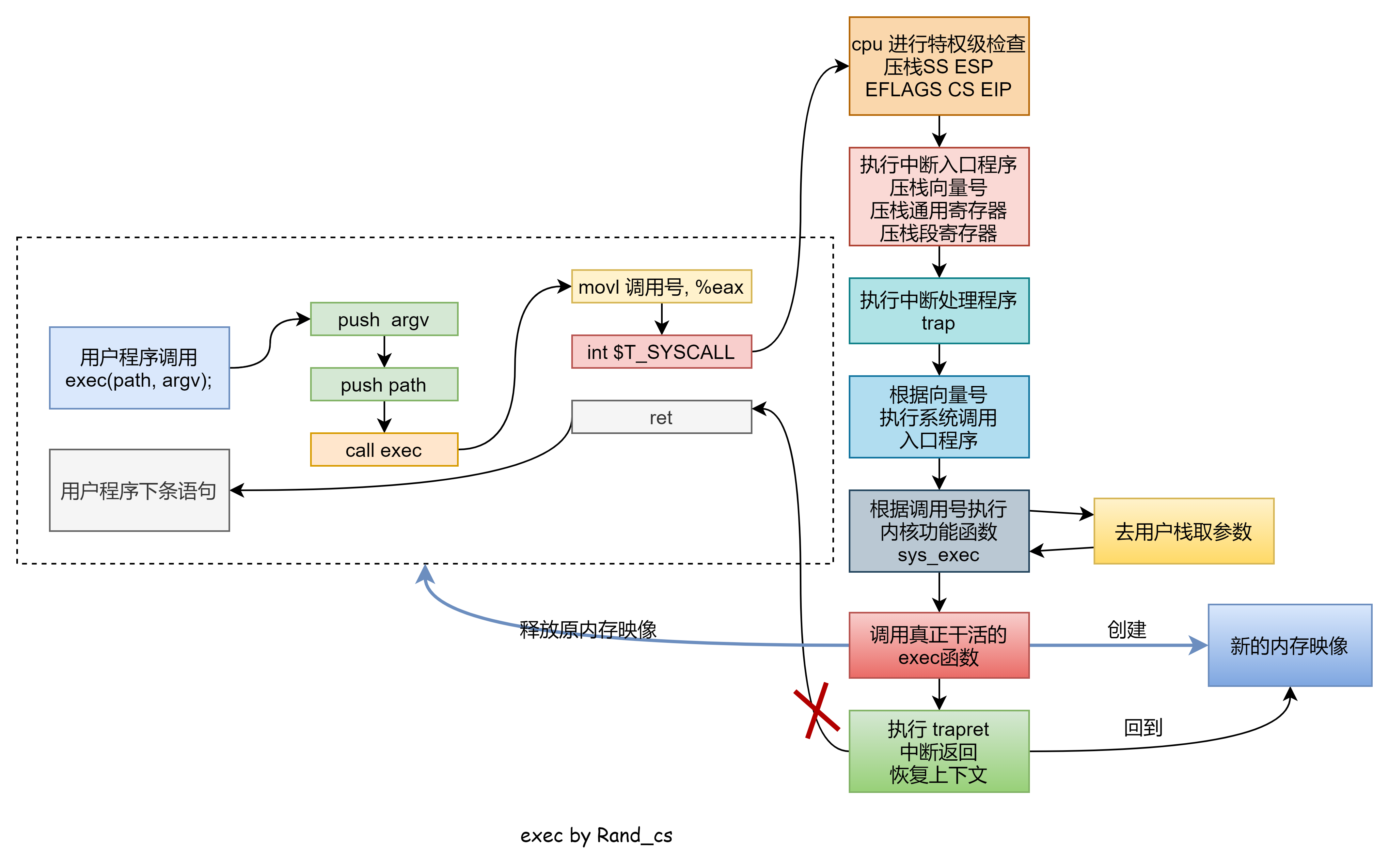 那根线的确是实线,因为处理系统调用的过程中有个更改