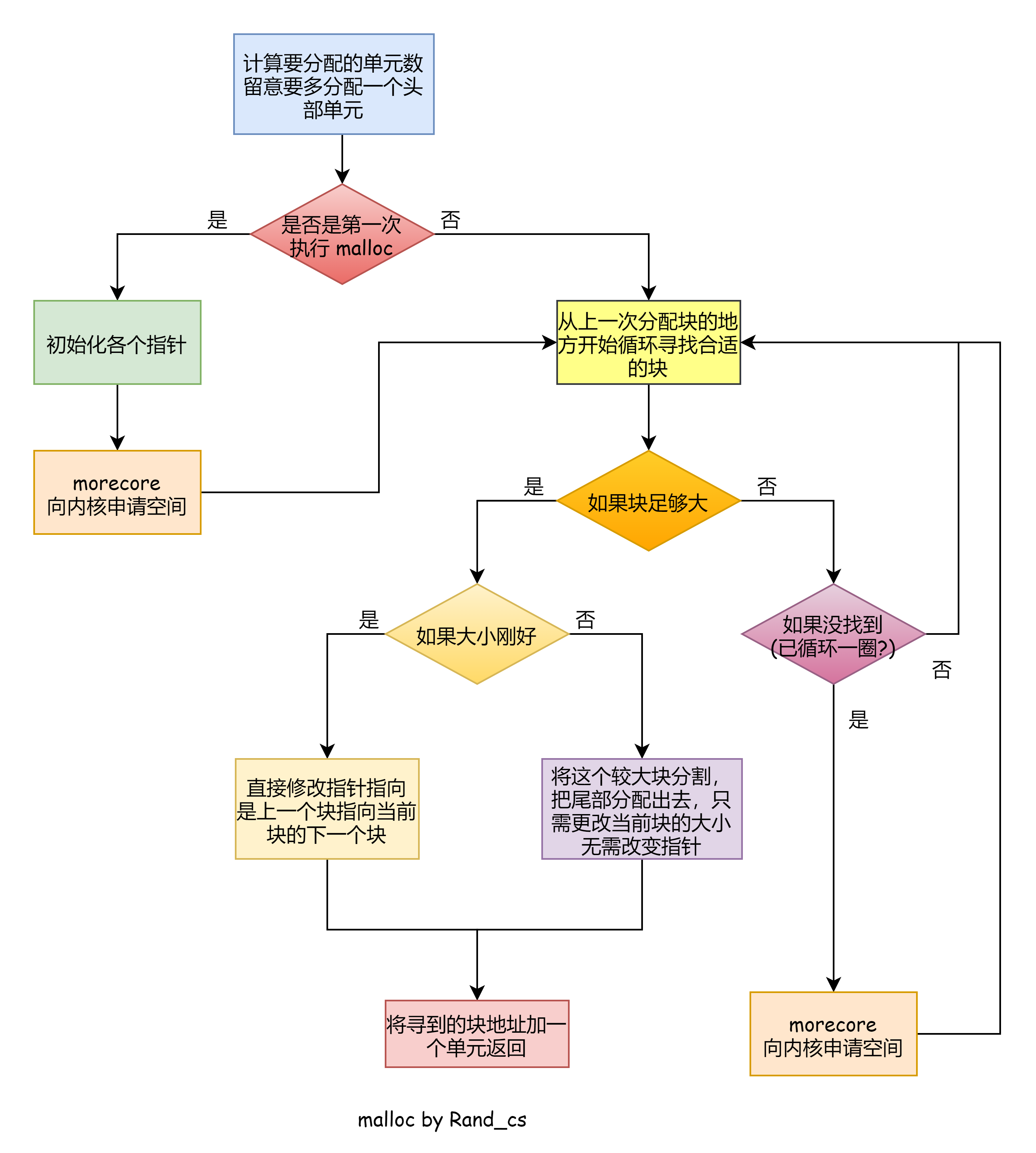 return (void*)(p + 1); //将该块分配给用户空间,返回给用户的部分不包括头部,所以加1